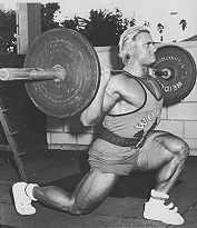Ausführung Stehen Sie aufrecht, Füße geschlossen, und halten Sie eine Langhantel auf den Schultern. Den Kopf hoch haltend, Rücken gerade und Brust vorgestreckt, setzen Sie ein Bein vor, beugen die Knie und bringen das hintere Bein fast bis zum Boden herab. Der Schritt nach vorn sollte so lang sein, daß das hintere Bein nahezu gestreckt ist.
