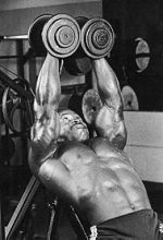 Ausführung Diese Übung wird auf der Flachbank ausgeführt, nur liegen jetzt auf einer Schrägbank, Kopf höher als die Hüften. Legen Sie sich auf die Bank, und halten Sie die Kurzhanteln vertikal über sich, Handteller einander zugewandt. Führen Sie die Gewichte bis unter Bankhöhe herab, um die Brustmuskeln maximal zu dehnen. Kommen Sie in weitem Bogen wieder hoch, als würden Sie jemanden umarmen. Vermeiden Sie es, die Gewichte nach innen zu bringen und gerade hochzudrücken. Spannen Sie die Brustmuskeln am oberen Punkt der Bewegung an, damit sie voll kontrahieren.