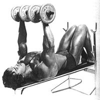 Ausführung Legen Sie sich auf eine Flachbank, Knie gebeugt, Füße flach auf der Bank. Nehmen Sie eine Kurzhantel in jede Hand, und halten Sie sie gerade hoch. Drehen Sie die Kurzhantel so, dass die Handteller nach vorn weisen. Führen Sie die Gewichte gleichmäßig und kontrolliert in Richtung Brust herab. Kommen Sie möglich weit herab, so dass Sie die Dehnung in den Brustmuskeln spüren. Drücken Sie die Gewichte dann wieder gerade hoch, bis die Arme gestreckt sind.