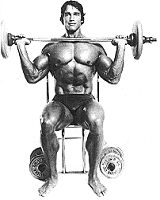 Ausführung Fassen Sie im Sitzen oder Stehen eine Langhantel mit etwa schulterbreiten Obergriff und halten Sie sie in Schulterhöhe, so daß sie auf den Handtellern ruht, den Ellbogen angezogen unter der Stange. Aus der Höhe des Schlüsselbeins drücken Sie das Gewicht senkrecht hoch, bis die Arme gestreckt sind. Achten Sie darauf, dass die Hantel im Gleichgewicht bleibt und dass Sie sie stets unter Kontrolle haben. Bringen Sie das Gewicht dann wieder in die Ausgangsstellung herab.
