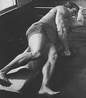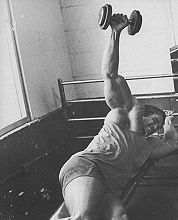 Ausführung Am besten legen Sie sich auf ein schräg gestelltes Bauchmuskelbrett. Sie können die Übung auch ohne Brett machen, doch ist der Bewegungsumfang dann eingeschränkt. Legen Sie sich auf die Seite, Kopf angehoben. Eine Kurzhantel in einer Hand haltend, bringen Sie diese fast bis zum Boden herab. Dann heben Sie sie hoch bis über den Kopf. Vergessen Sie nicht, die Hand beim Heben etwas zu drehen, Daumen nach unten, damit der hintere Deltamuskel stärker kontrahiert. Nach Beendigung Ihrer Wiederholungen mit dem einen Arm legen Sie sich auf die andere Seite und machen eine entsprechende Anzahl mit dem anderen Arm.