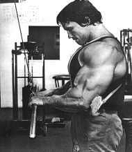 Ausführung Befestigen Sie an einem Kabelzug von oben eine kurze Querstange, stellen Sie sich nahe an die Stange, und fassen Sie mit Obergriff, die Hände etwa 25 cm auseinander. Ziehen Sie sie eng an den Körper, ohne sie zu bewegen. Halten Sie den Körper ruhig - und lehnen Sie sich nicht vor, um mit dem Körpergewicht nach unten zu pressen. Drücken Sie die Stange herab, bis die Arme durchgestreckt sind und Sie spüren, dass der Trizeps voll kontrahiert ist.Lassen Sie die Stange dann wieder möglichst weit hochkommen, ohne die Ellbogen zu bewegen. Zur Abwechslung können Sie den Griff verändern, eine anders geformte Stange verwenden, den Abstand zwischen sich und der Stange variieren oder den Handabstand verändern; Sie können auch eine Dreiviertel-Bewegung ausführen, wobei Sie von ganz oben nur drei Viertel des Wegs herabkommen, um den unteren Trizeps gezielter zu beanspruchen.